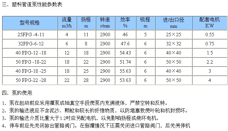 ![]() 四、泵的使用: 1、泵在起動(dòng)前應(yīng)采用灌泵或抽真空手段使泵內(nèi)充滿液體,嚴(yán)禁空轉(zhuǎn)和反轉(zhuǎn)。