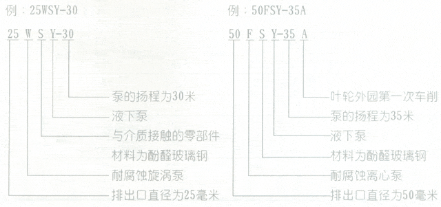 本泵 用于化工、石化、冶煉、染料、農藥、制藥、稀土、化肥等行業,在貯罐上輸送不含懸浮固體顆粒,不易結晶,溫度不高于 三、型號意義: