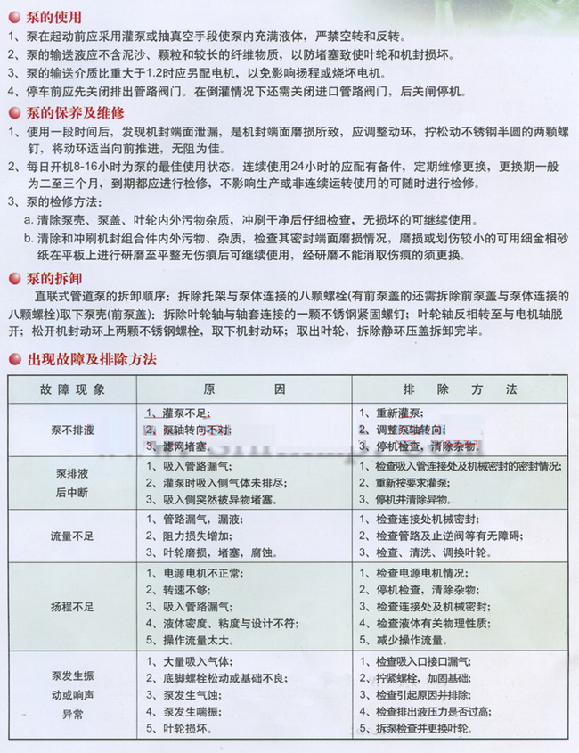 FPG耐腐節能管道泵故障排除