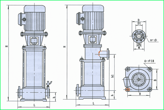 GDL型立式多級管道離心泵|外形安裝尺寸圖 GDL型立式多級管道離心泵外形安裝尺寸圖: