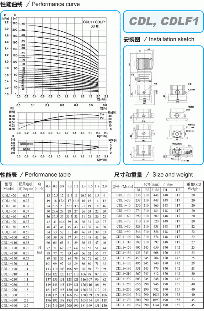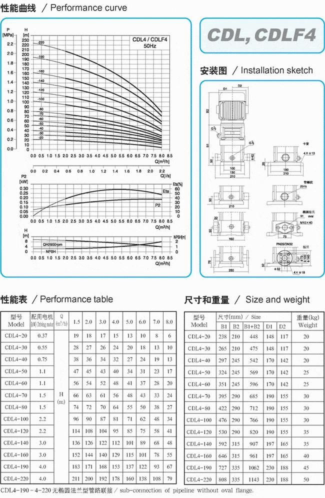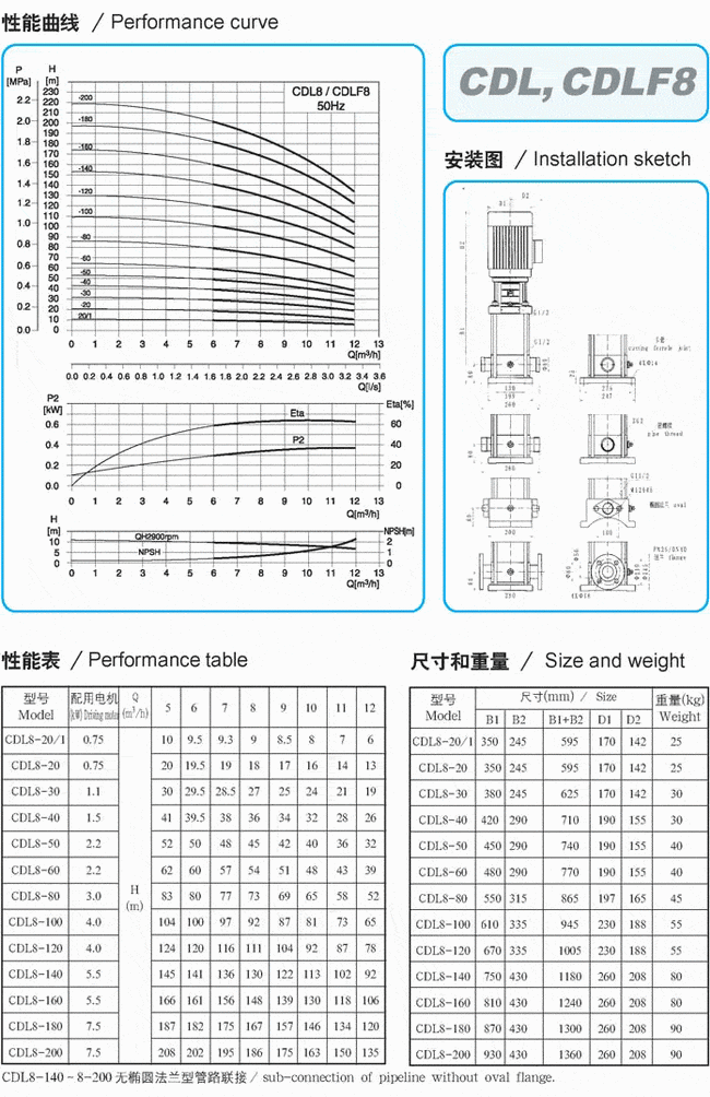 導(dǎo)航:回首頁---當(dāng)前位置---水泵產(chǎn)品內(nèi)容頁補(bǔ)充頁 >> CDLF系列輕型不銹鋼立式多級(jí)泵性能參數(shù)表(1) |