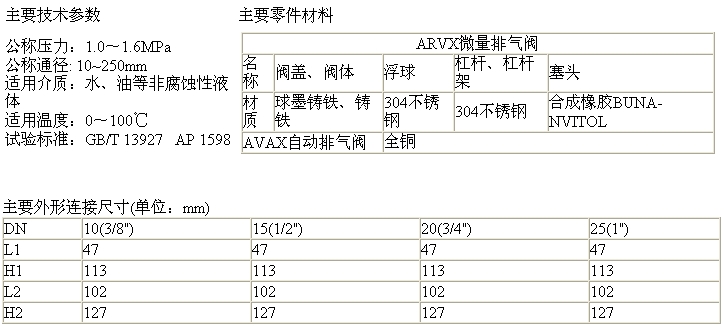 ARVX自動(dòng)排氣閥![]() ARVX自動(dòng)排氣閥 更多信息產(chǎn)品概述